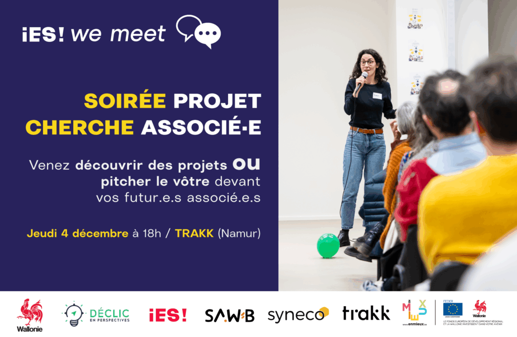 ✨ iES!, Déclic en Perspectiv’ES, SAW-B et Syneco et le TRAKK organisent la soirée « Projet cherche associé.e » pour vous mettre en contact ! 🤝🌍